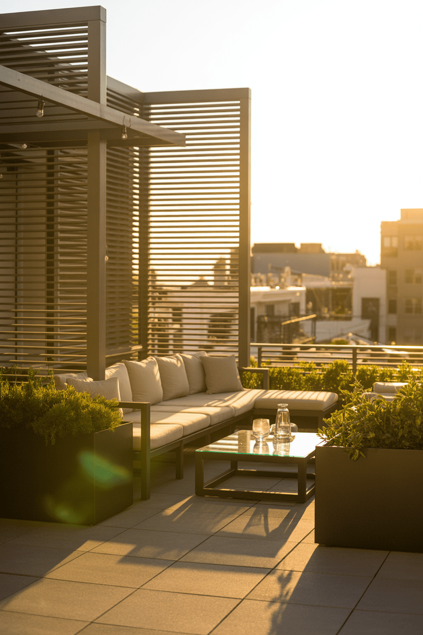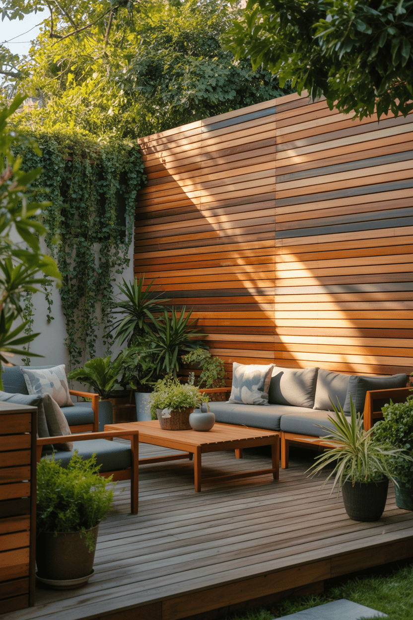If you have an elevated deck or rooftop patio, privacy walls are essential. A tall deck privacy wall helps block nearby windows and buildings while creating a more comfortable outdoor space. Wood slats or modern panels work beautifully here.