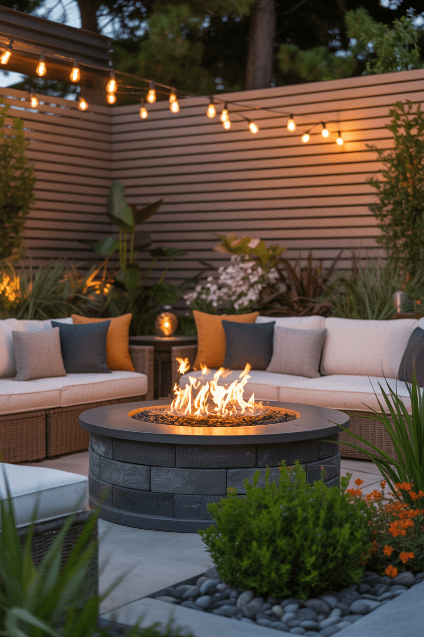 A fire pit area feels much more intimate when surrounded by a privacy wall. A backyard fire pit privacy wall blocks wind and views while framing the seating area. Materials like wood, stone, or metal panels can all work beautifully here.