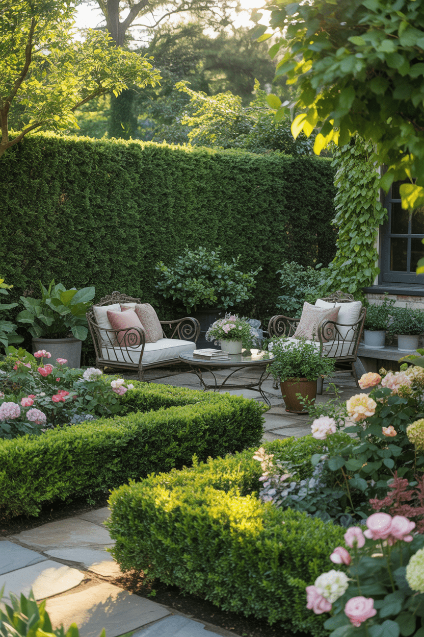 24. Boxwood hedge privacy wall for a lush border
