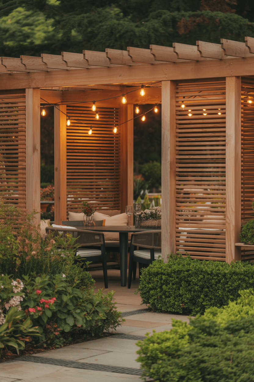3. Pergola with built-in privacy wall screens