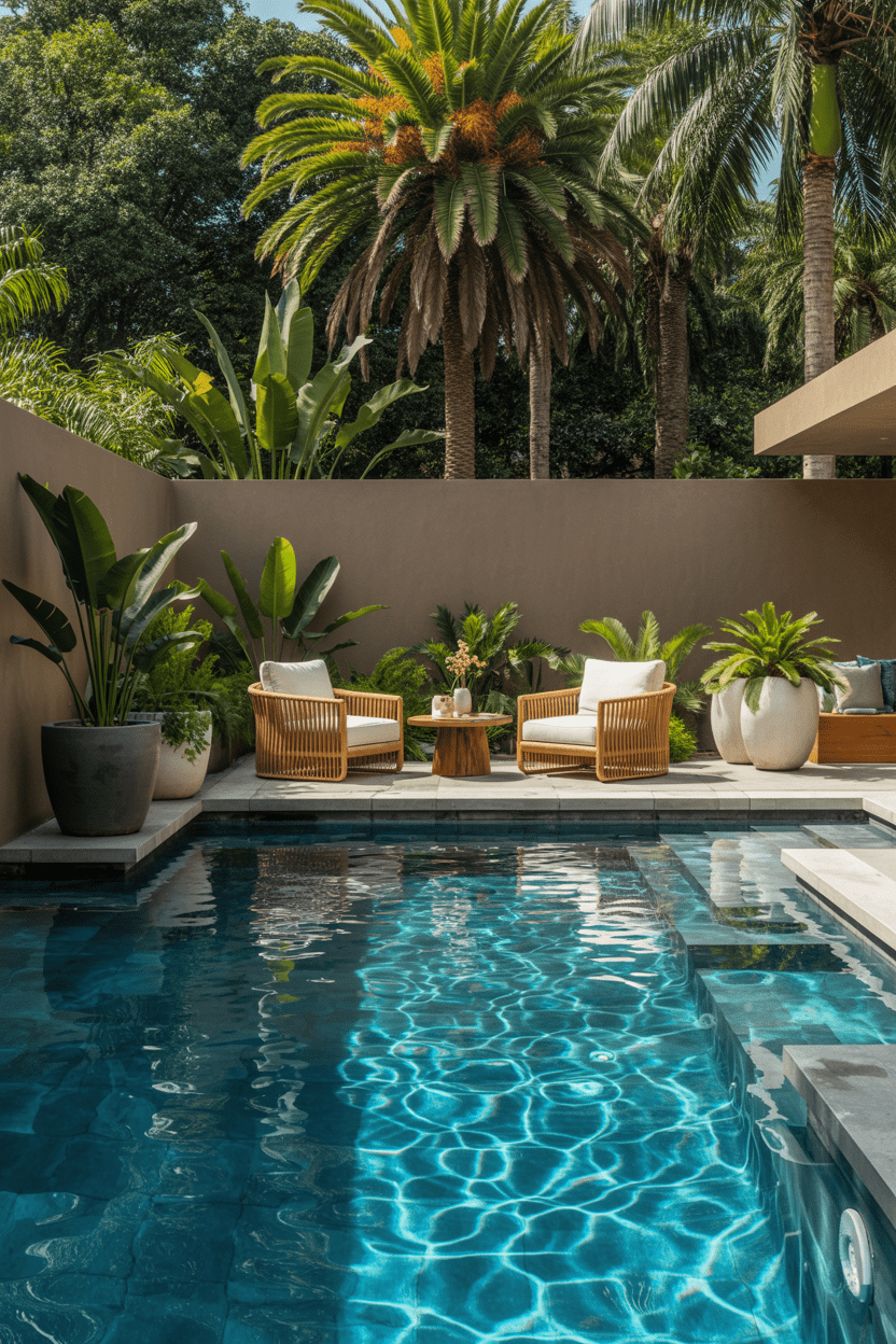 5. Poolside privacy wall with tropical landscaping
