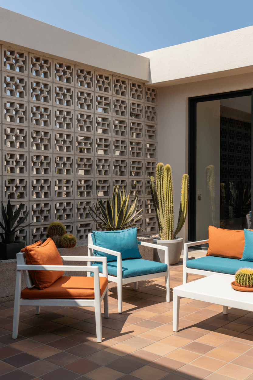 A breeze block privacy wall is one of those design features that instantly adds architectural charm. The patterned concrete blocks allow light and air to pass through while still providing privacy. This type of outdoor privacy wall looks especially stunning on mid-century modern patios or contemporary backyards. It adds texture, pattern, and visual interest without feeling heavy.