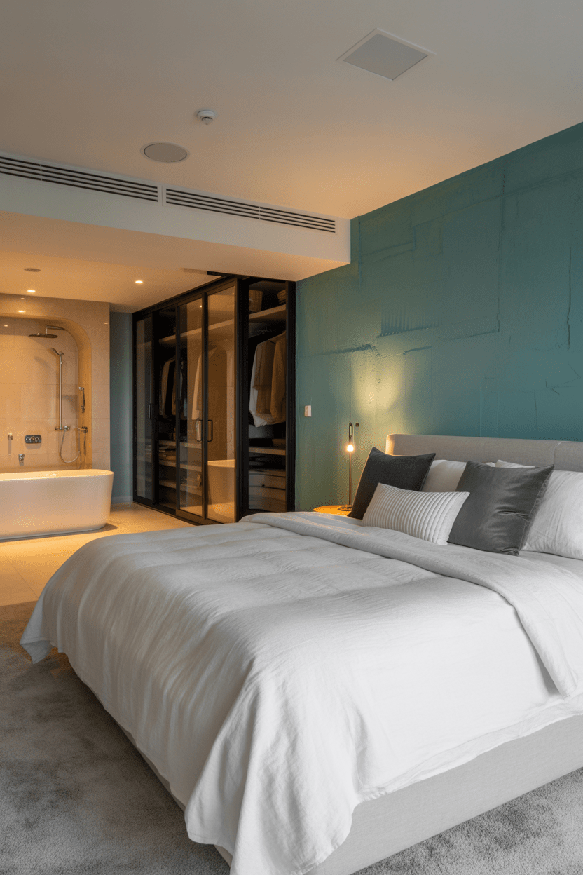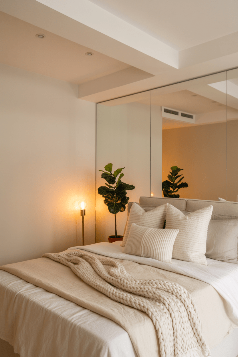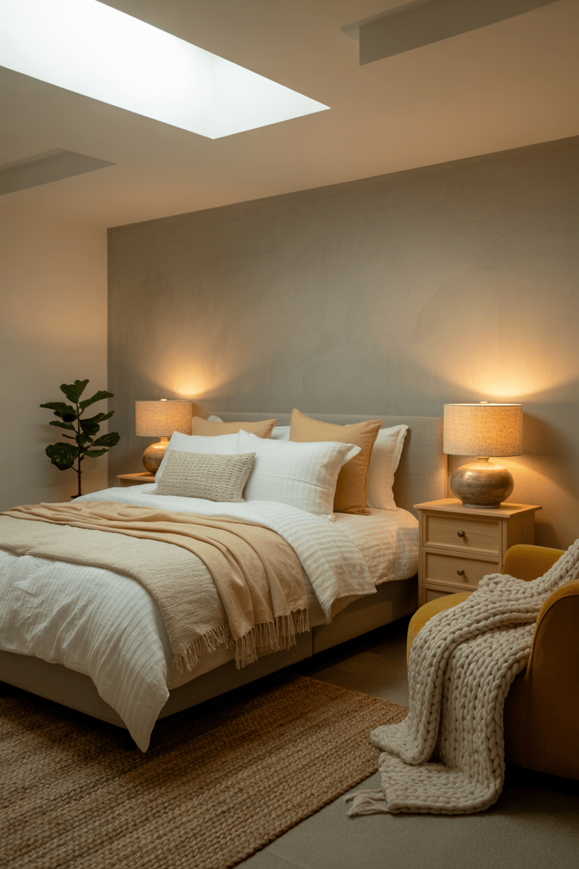 Windowless basements can still shine with the right design. I recommend using light paint colors, oversized mirrors, and layered artificial lighting to brighten things up. This type of basement bedroom setup can feel surprisingly airy, even with no windows.