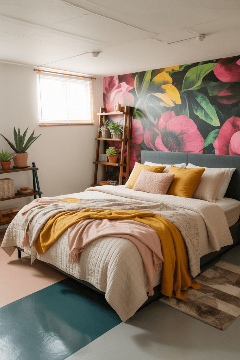 I’m a huge fan of DIY projects, and basements are the perfect place to experiment. Painted concrete floors, peel-and-stick wallpaper, and secondhand furniture make it easy to create a DIY basement bedroom that’s budget-friendly and unique.