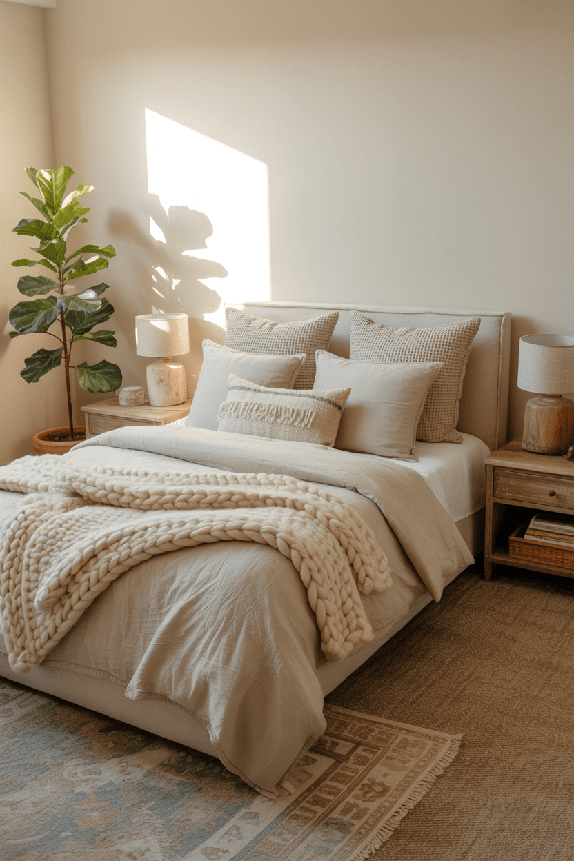- Add cozy textiles like rugs, curtains, and throw blankets to soften the room.