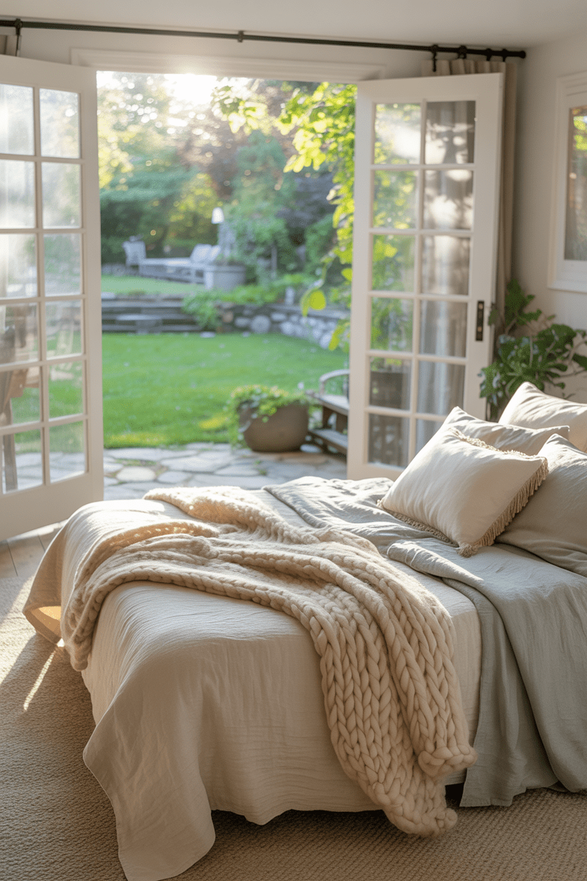 If you’re lucky enough to have a walkout basement, use it to your advantage. Large glass doors that open to the outdoors make your basement bedroom feel bright, airy, and connected to nature.