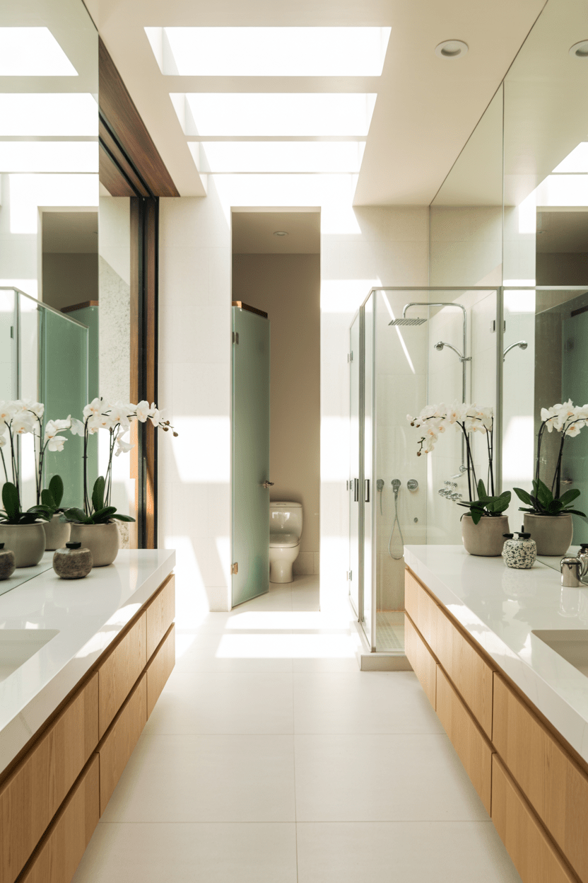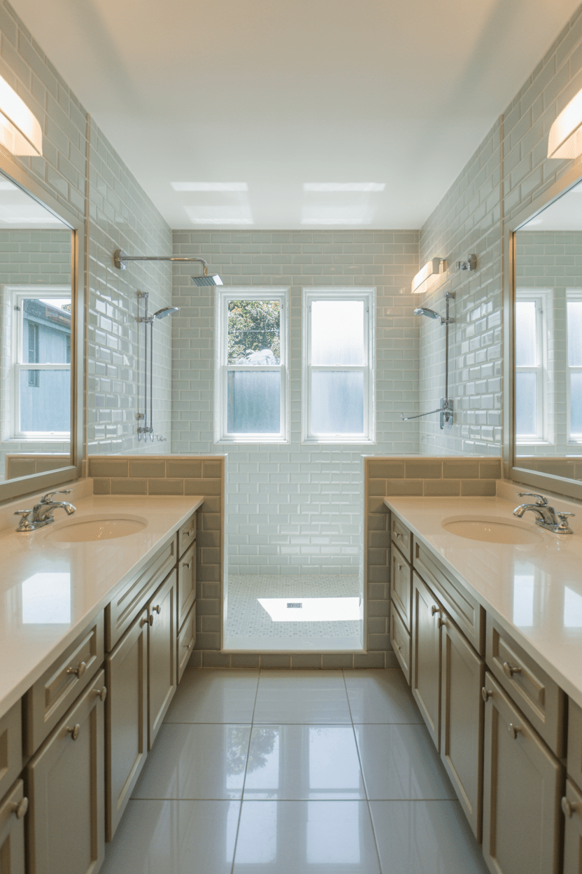 Jack and Jill bathroom concepts are ideal for shared spaces. Dual entrances, separate showers, and separate vanity zones create privacy without sacrificing style. It’s practical, but it can still feel elevated with the right finishes.