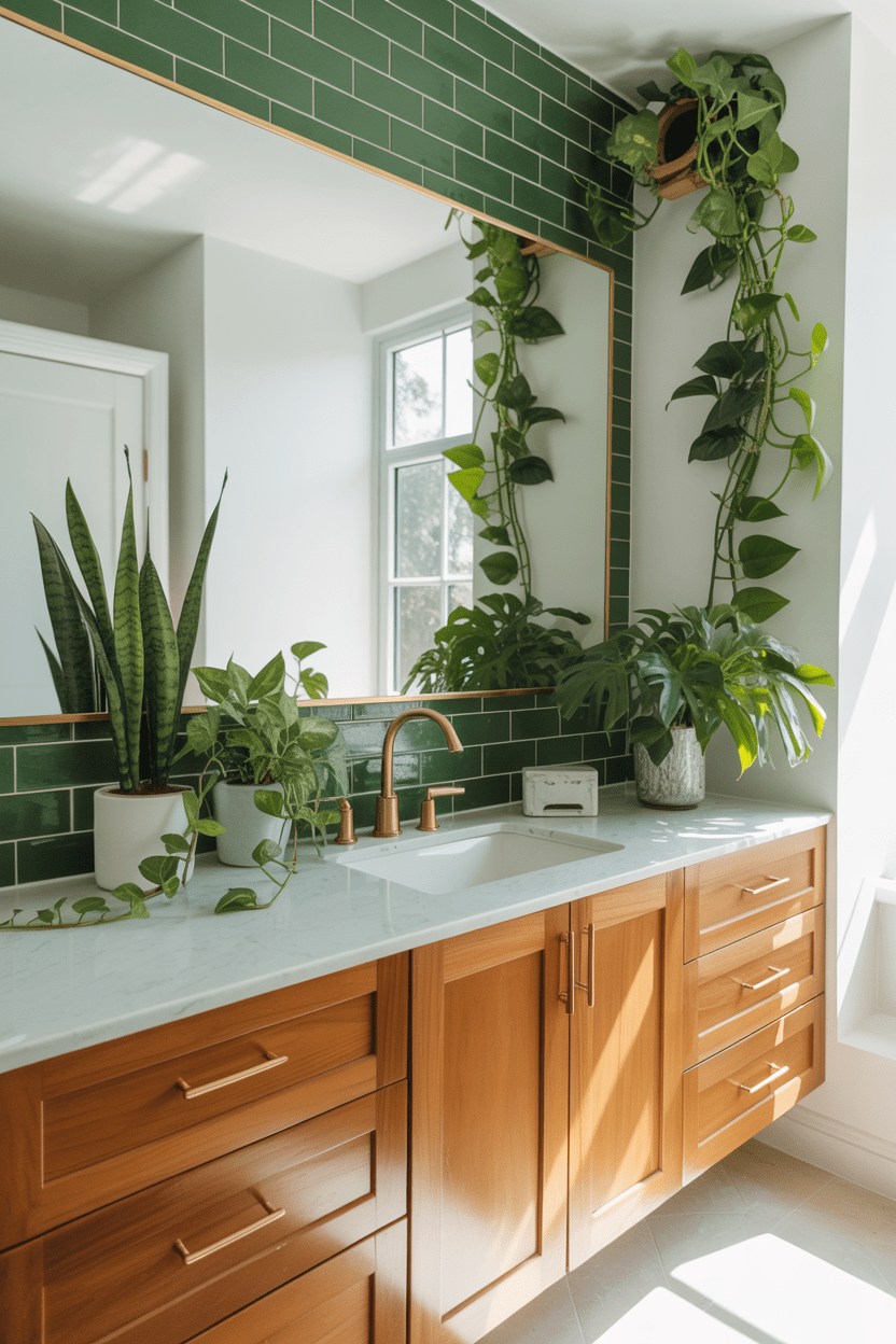 Avocado green bathrooms might sound vintage, but when styled thoughtfully they can feel fresh. Balance green tile with white walls and natural wood accents to create contrast and warmth. It’s unexpected, but incredibly charming.