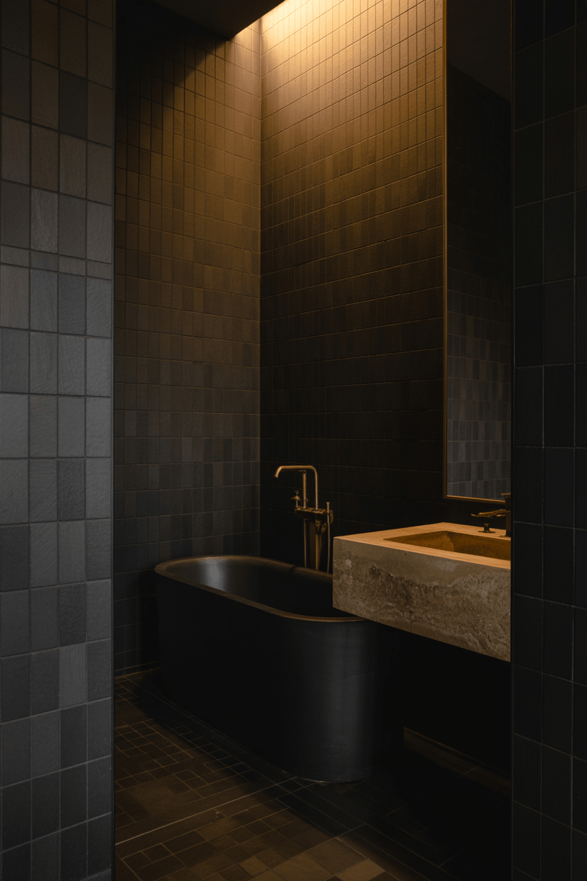 Black bathrooms are not for the faint of heart—and that’s exactly why I love them. Matte black fixtures, dark tile, and layered lighting create a moody, cocoon-like feel that’s incredibly chic. The key is balance. Add mirrors, warm lighting, and maybe even natural wood to keep the space feeling rich instead of heavy.