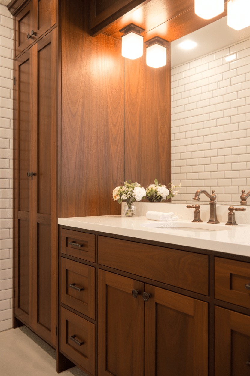 Craftsman bathroom designs focus on craftsmanship and detail. Rich wood cabinetry, clean lines, and subtle tile patterns create a grounded, architectural feel. If you love timeless design that doesn’t chase trends, this approach is beautiful and enduring.