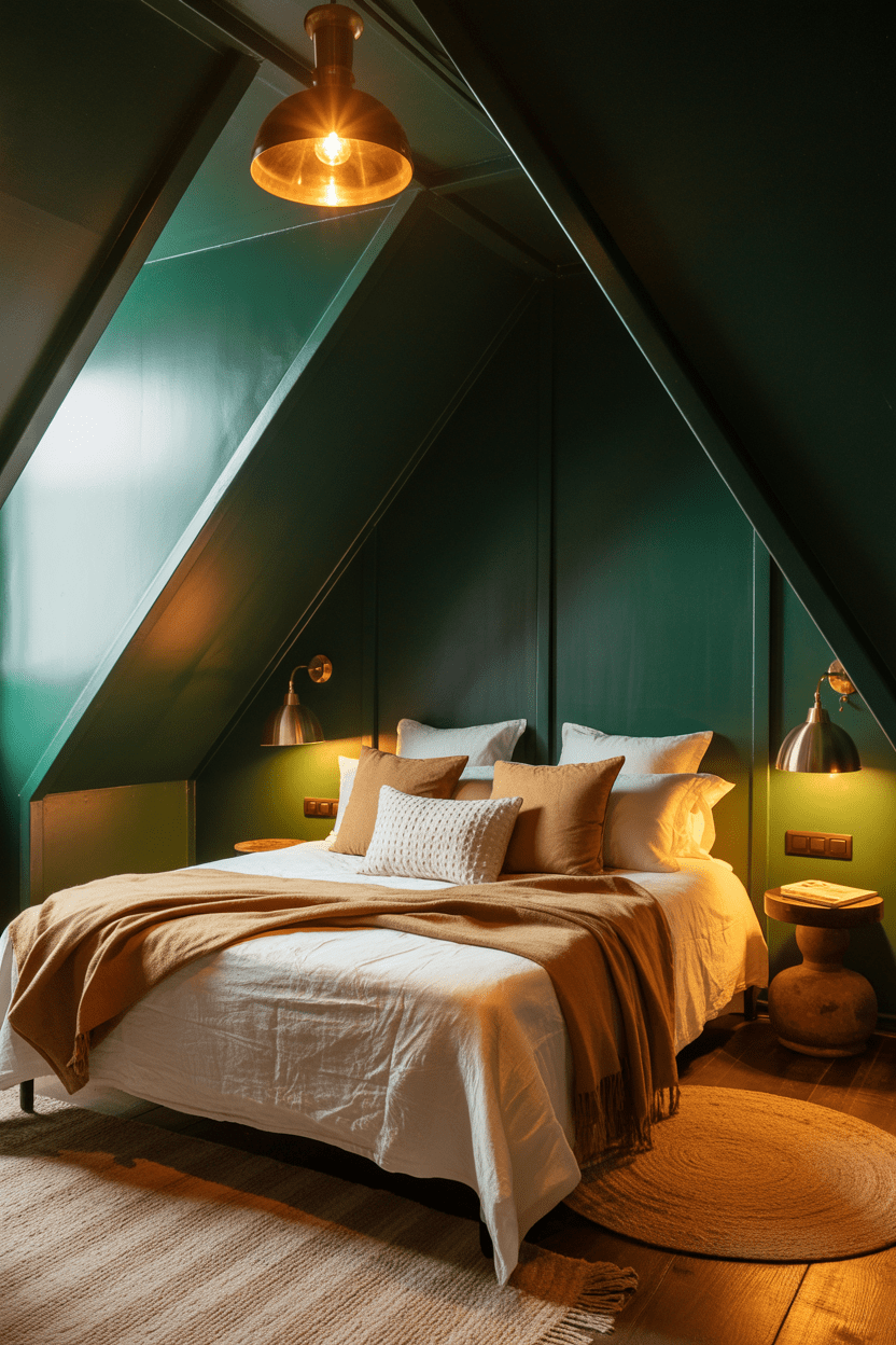 10. Moody green or deep grey attic bedroom