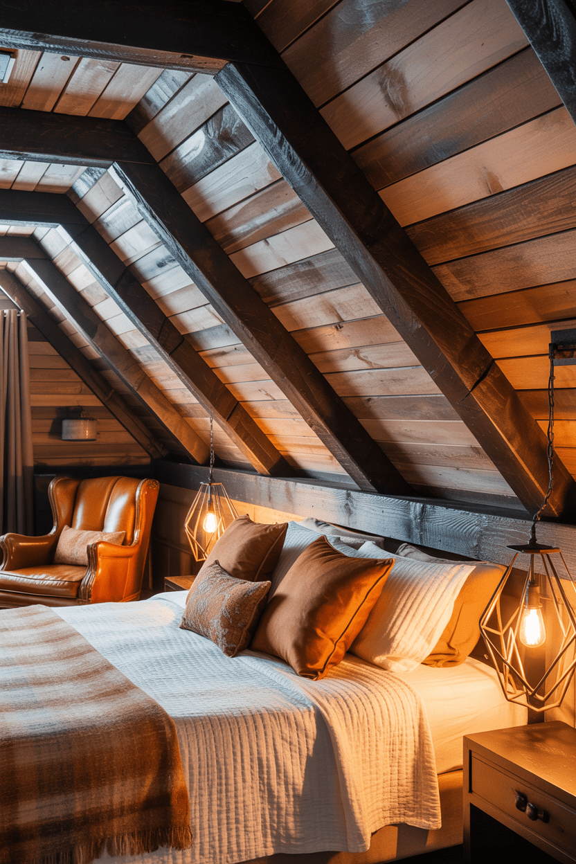 12. Rustic attic retreat with wood ceilings