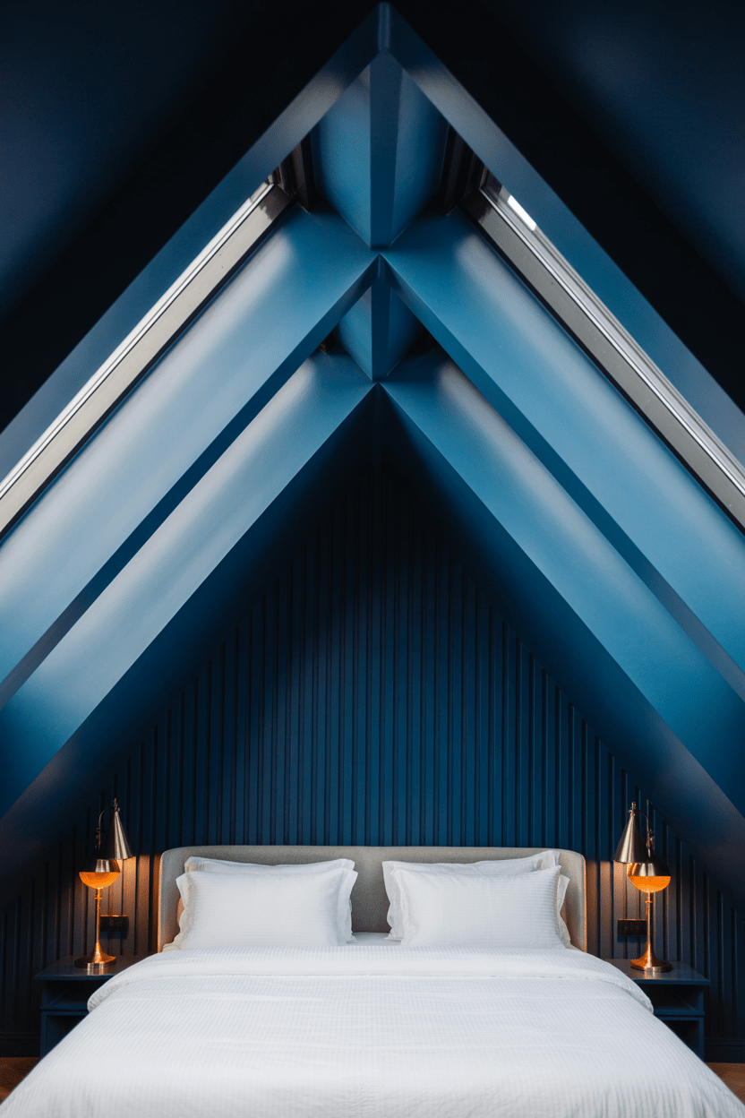 Attic bedrooms with angled ceilings can be stunning when you lean into them. One of my favorite tricks is adding a bold accent wall or wallpaper on the slanted surface behind the bed. It instantly turns architectural challenges into a design feature, and a deeper paint color creates depth and makes the space feel curated instead of cramped. I always tell my clients to embrace the slope—once you highlight it, the whole room feels more dynamic and visually interesting.