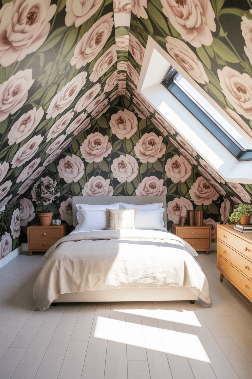 6. Statement wallpaper on slanted walls