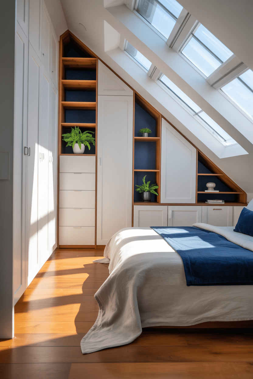 • Incorporate built-in attic bedroom storage ideas to maximize every inch