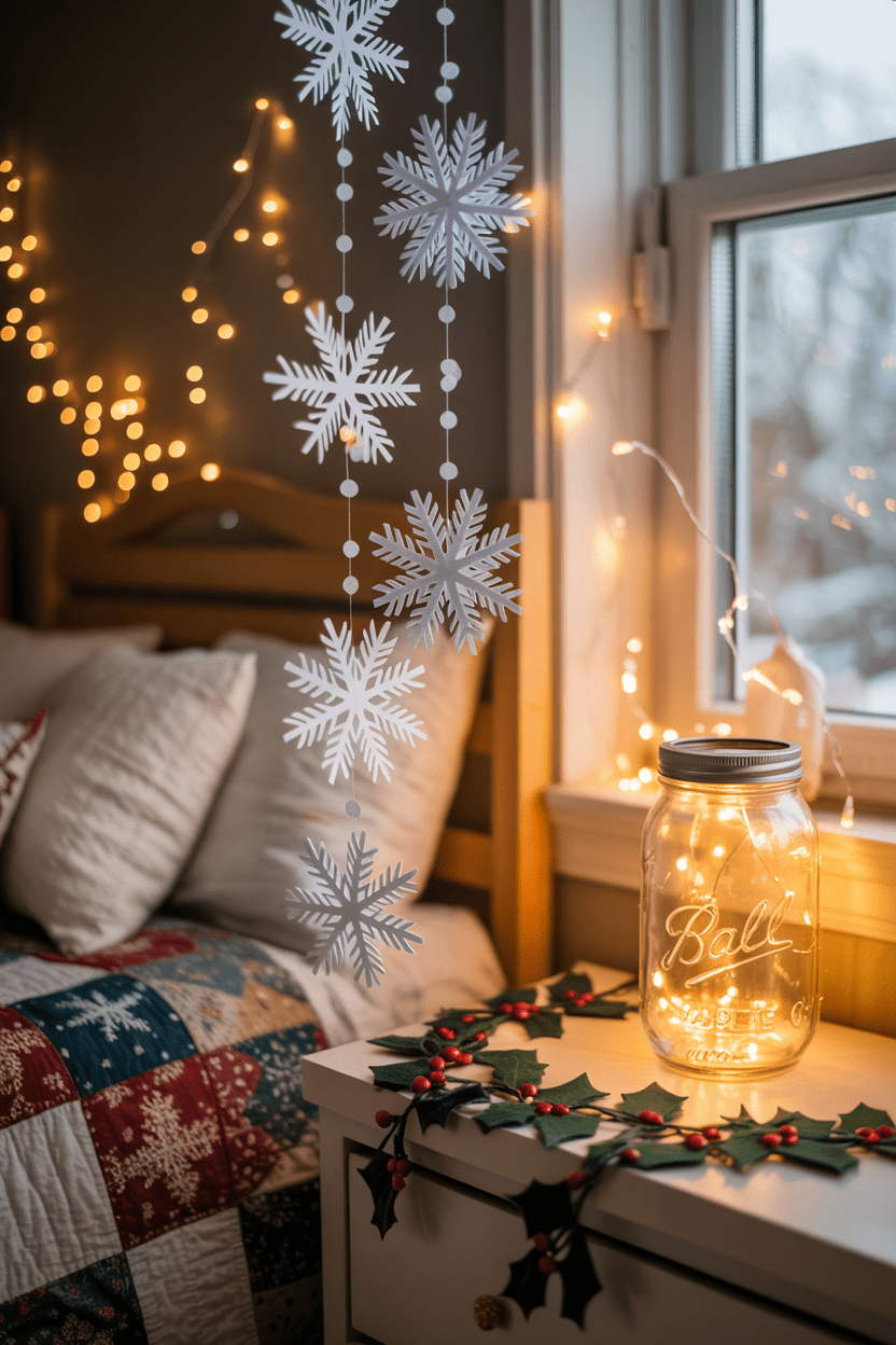 Adding personal touches always makes a space feel extra special. DIY ornaments, mason jar lights, or handmade garlands give your bedroom a cozy, thoughtful Christmas vibe. It’s budget-friendly and super fun to get creative!