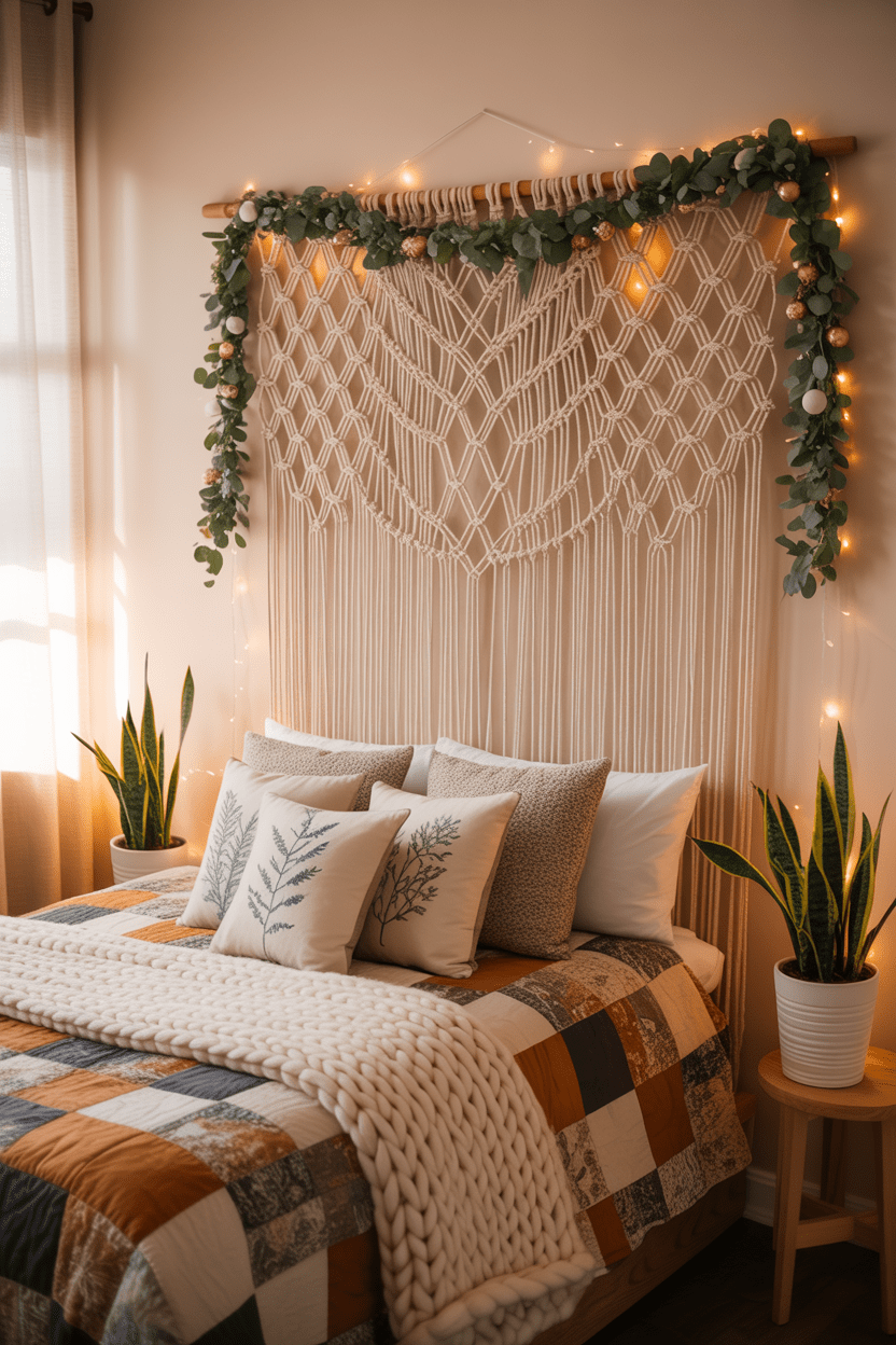 Layered textures, eclectic ornaments, and warm neutral tones make a boho bedroom so cozy and inviting for Christmas. It’s perfect if you love a more relaxed, artsy holiday vibe while still keeping things festive and stylish.