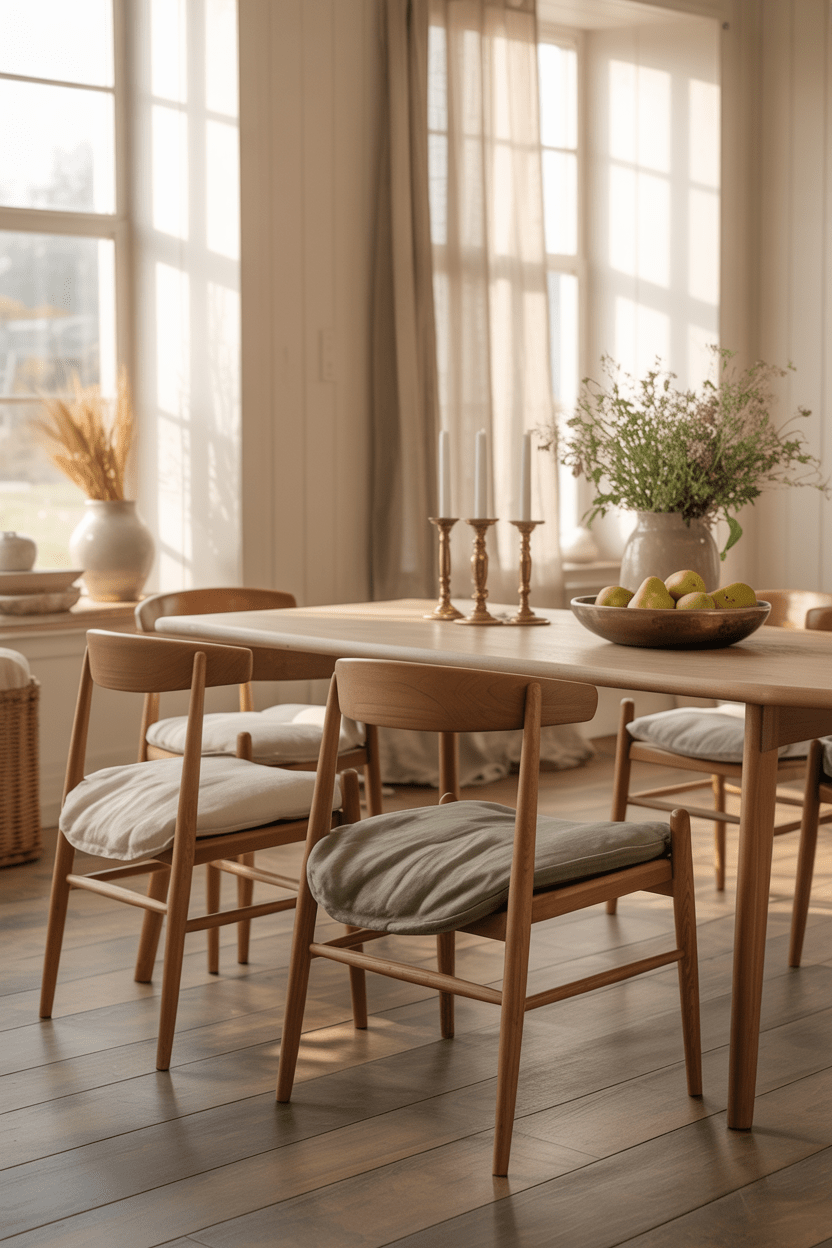 Mixing and matching chairs is one of the simplest ways to achieve that collected-over-time cottagecore dining room look. I enjoy combining painted wood chairs, spindle backs, and even a cushioned seat or two. It keeps the space feeling relaxed, personal, and full of charm instead of overly coordinated.