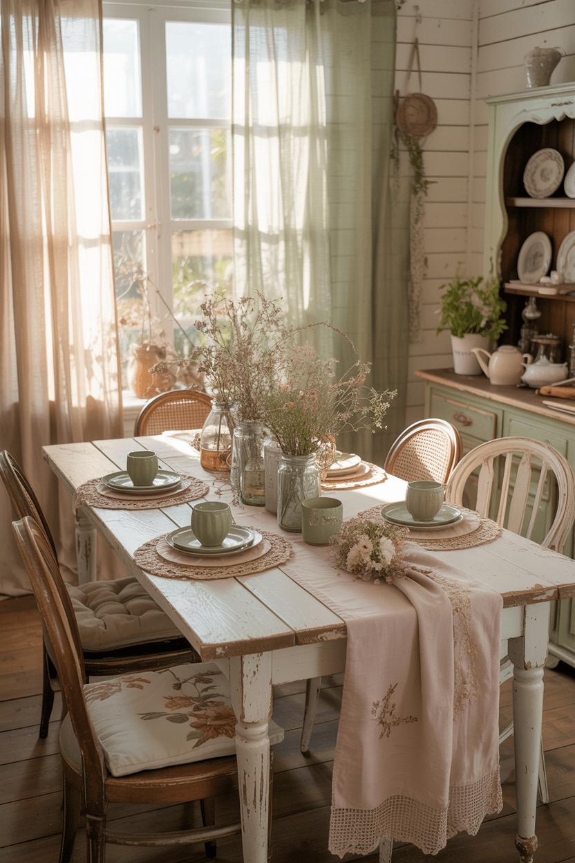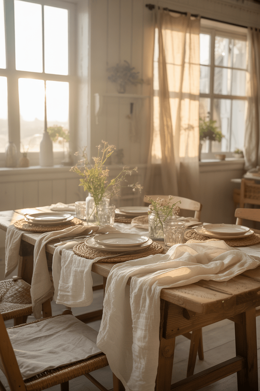 5. Soft linen layers for a cottagecore dining room aesthetic