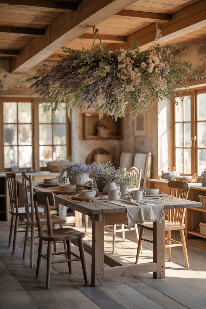 8. Hanging dried flowers and herbs for a rustic cottagecore dining room