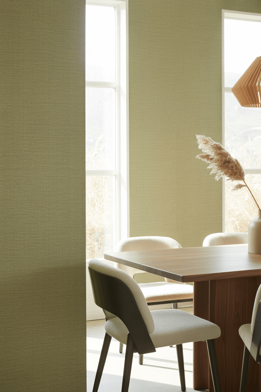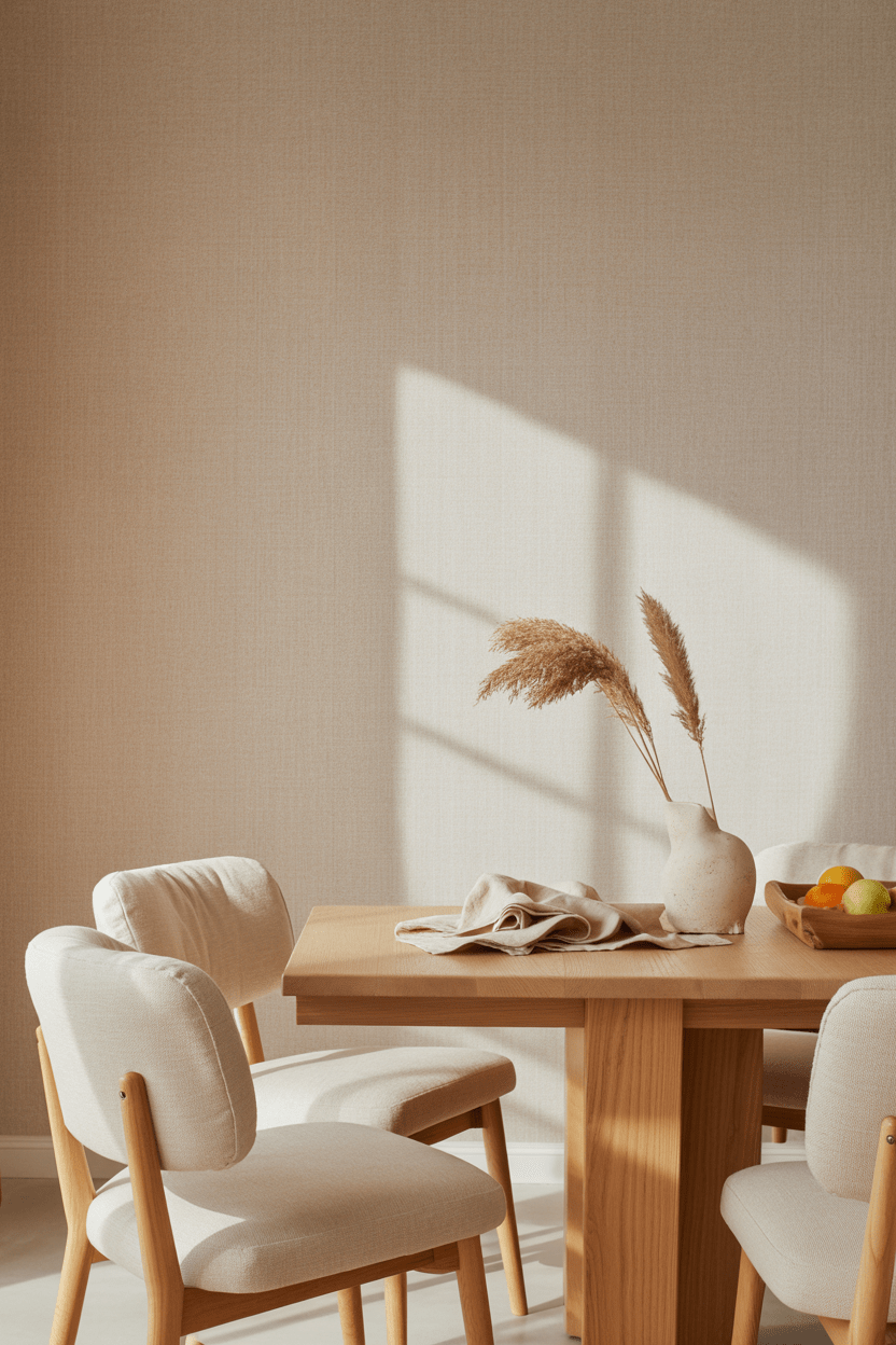 If you’re looking for quiet sophistication, neutral dining room wallpaper is the way to go. Linen textures, soft patterns, and warm beiges make the room feel calm and breezy while still adding dimension.