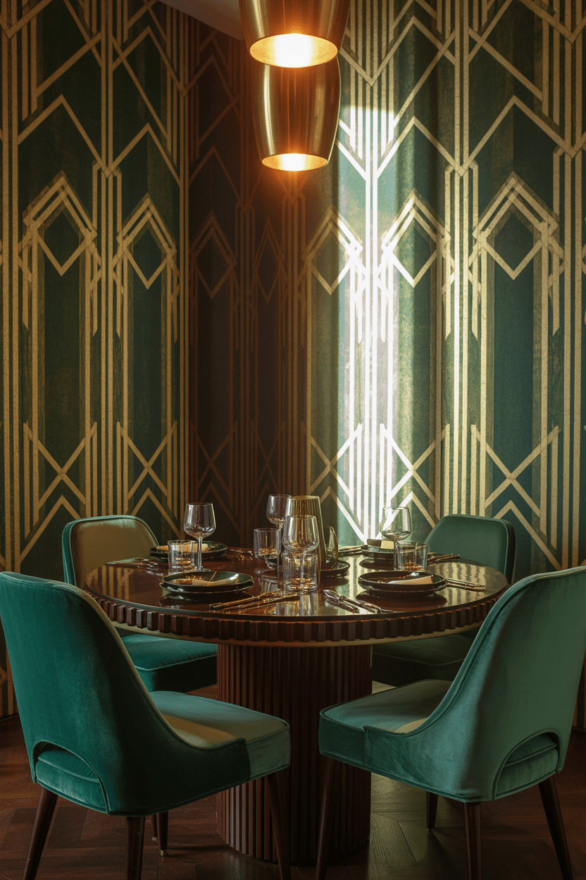 If you want your dining room to sparkle a bit, art deco wallpaper is your girl. Those scalloped and geometric patterns add instant sophistication with a vintage twist.