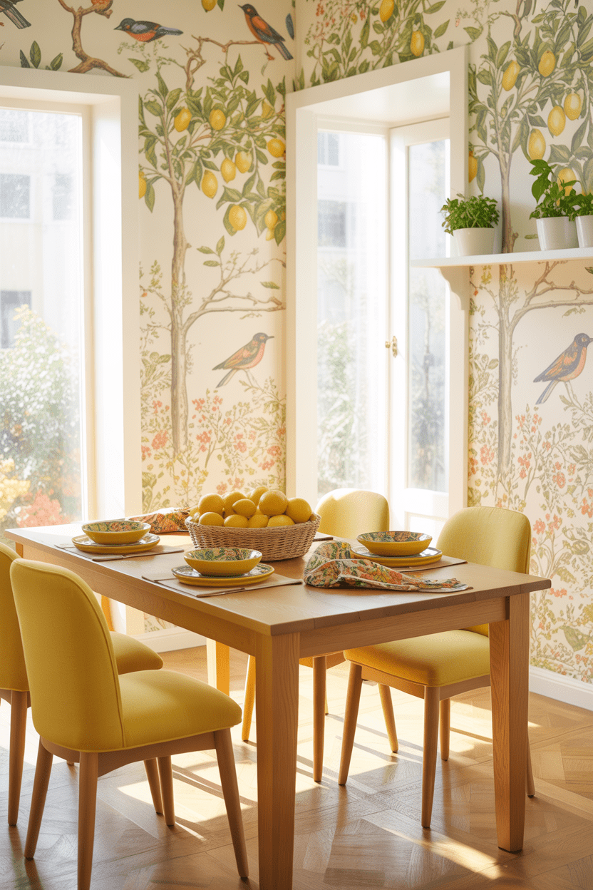 For the homeowners who love character and creativity, whimsical wallpaper is a dream. Think lemons, birds, charming florals, or hand-drawn illustrations. It adds joy every time you walk in the room.