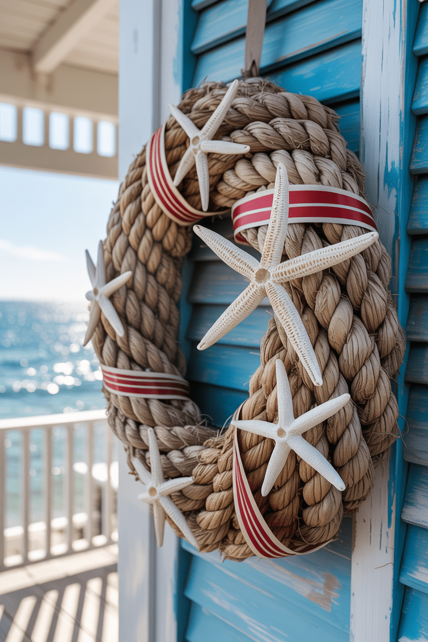 11. Coastal rope and starfish wreath for a beach-inspired Memorial Day