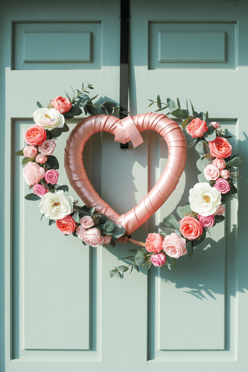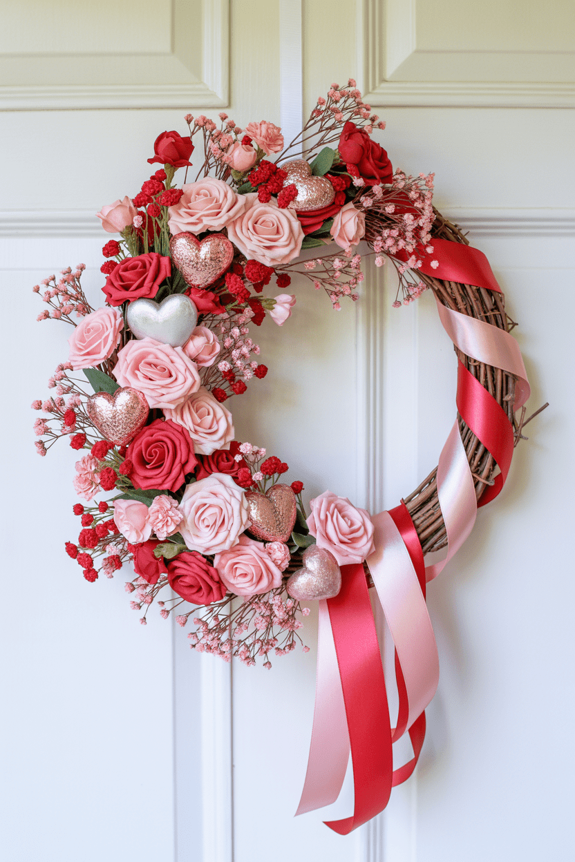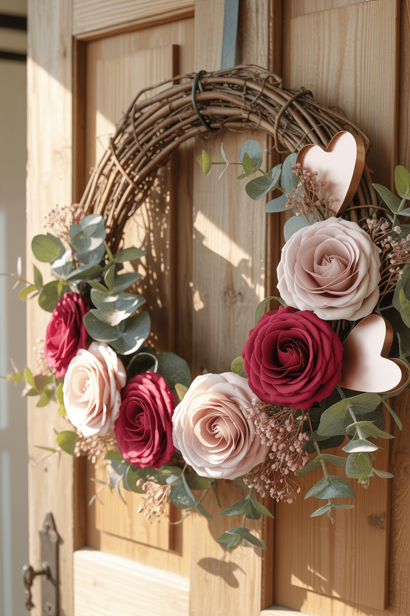For something timeless, go for an elegant Valentine wreath. Use muted florals, subtle pinks, and soft greenery to create a graceful, sophisticated look. It’s ideal for anyone who wants to celebrate Valentine’s Day with understated beauty.