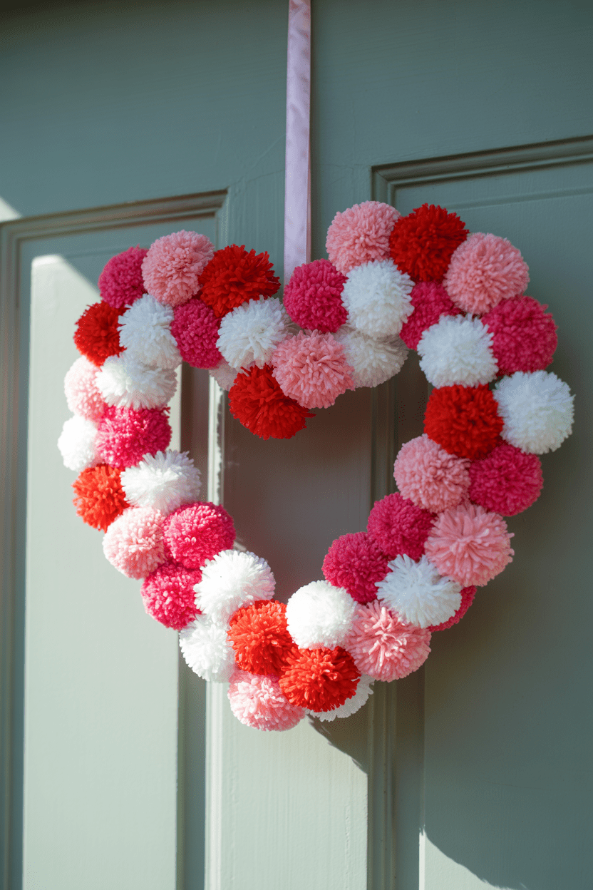 5. Pom pom Valentine wreath