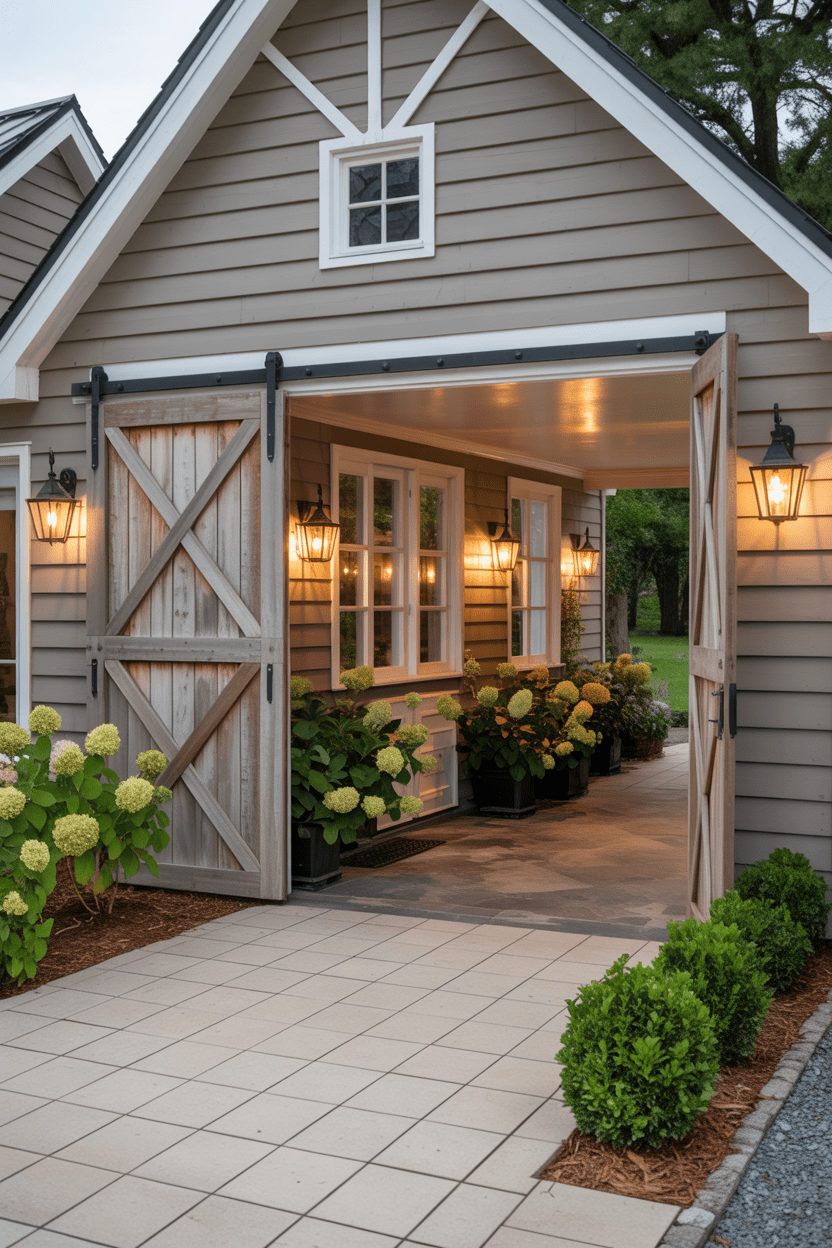 If your carport feels a little too open, consider enclosing it with siding and adding barn doors. It creates a semi-garage look while keeping the overall structure casual and charming. This carport conversion is especially great for extra storage or even a future workshop.