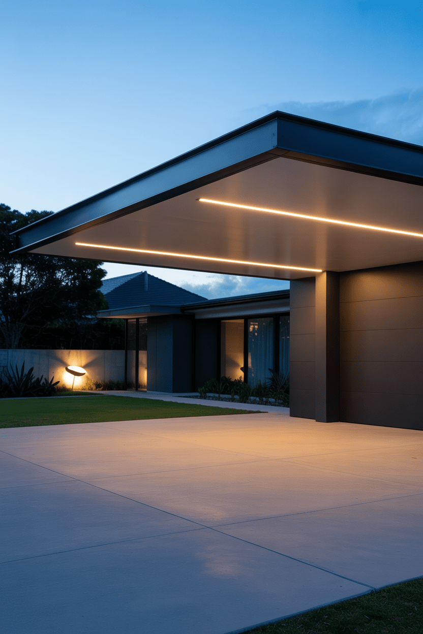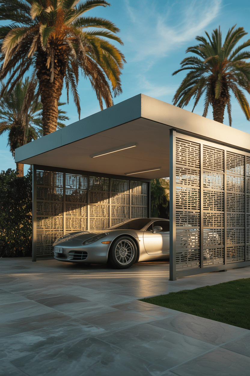 This one’s for the modern design lovers. A cantilevered carport creates that floating roof effect that’s super clean and architectural. Keep the materials simple—like concrete flooring and metal framing—and don’t forget to add some sleek lighting underneath to make it glow at night.