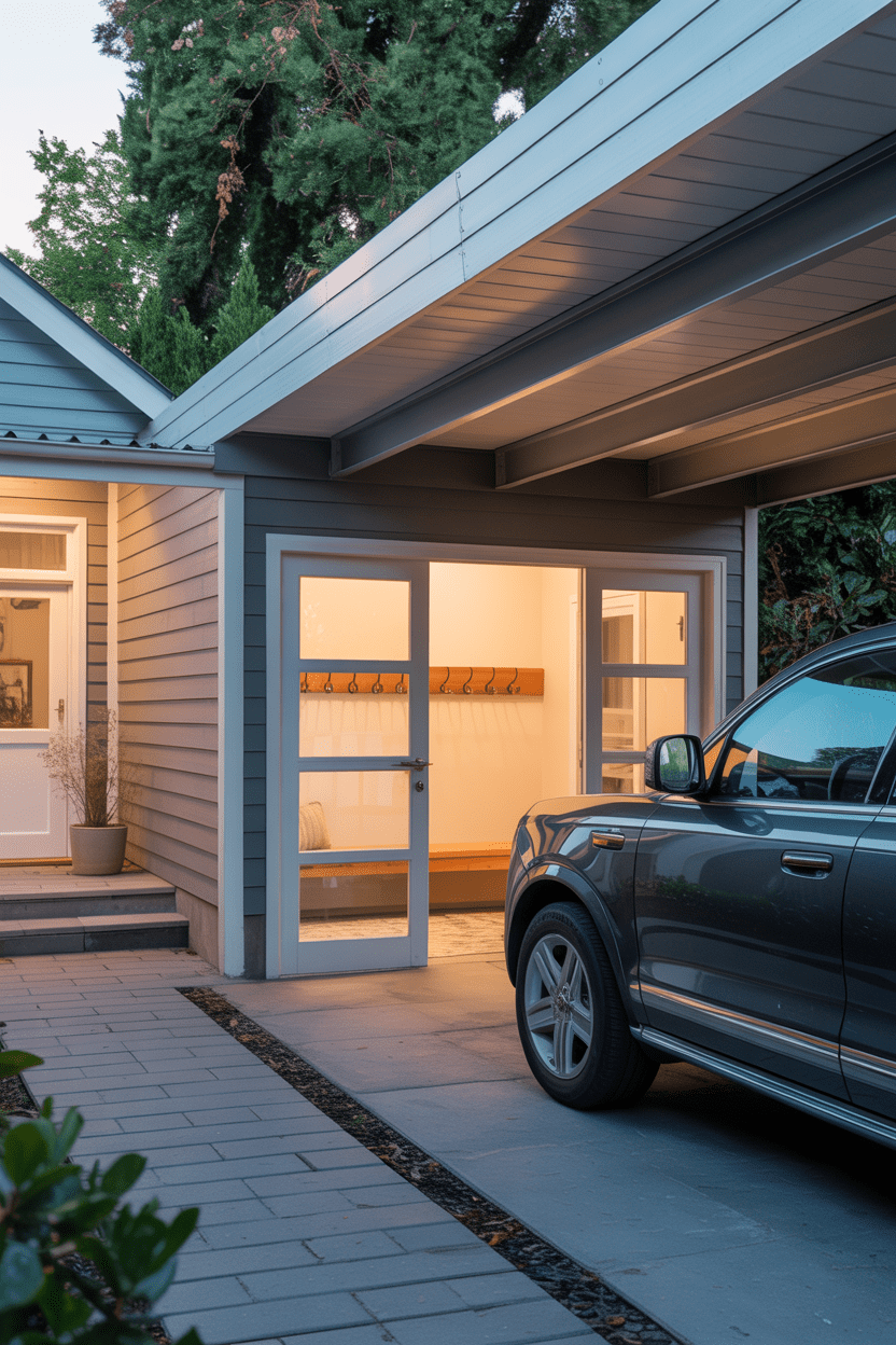 I’m all about function that doesn’t sacrifice charm. A carport with a covered entry leading into a small mudroom gives you a place to drop bags, hang coats, and keep the mess contained. Finish it in the same siding as your home and it’ll feel totally intentional.