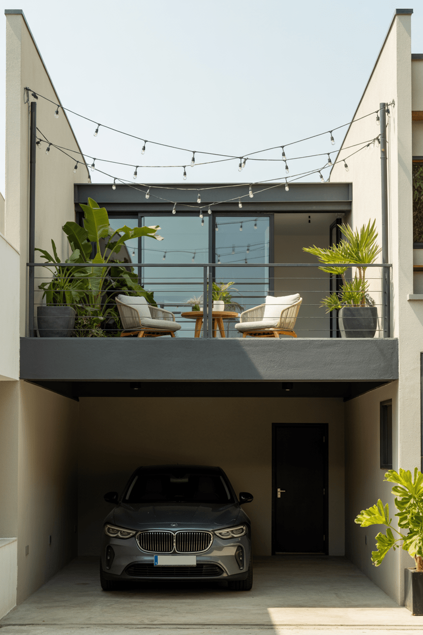 Now this is smart design. If you’re tight on space (or just love a multifunctional layout), a carport with a deck or balcony on top gives you double the function. Park below, entertain or sunbathe above. It’s modern, fresh, and a total space-saver.