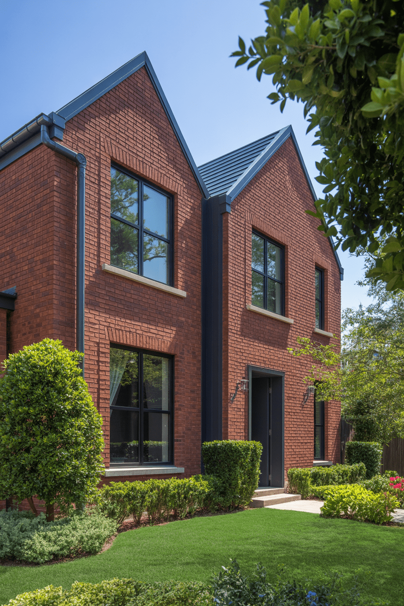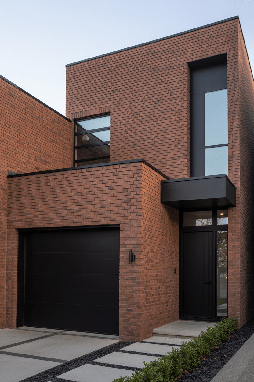 1. Modern red brick exterior with black trim and windows