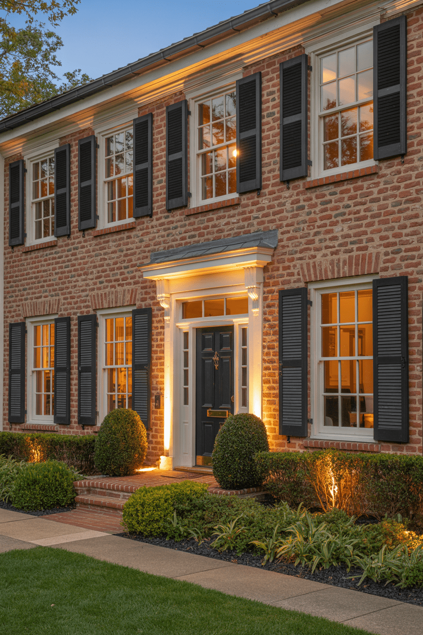 Black shutters are a true classic, and for good reason—they instantly dress up a red brick house exterior. Pairing them with a matching black door creates a cohesive, elevated look that feels both timeless and polished.