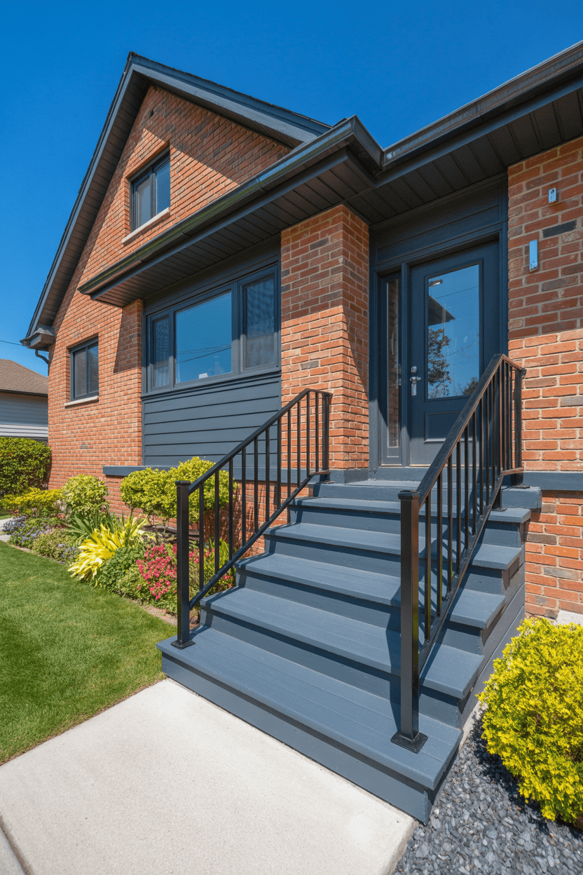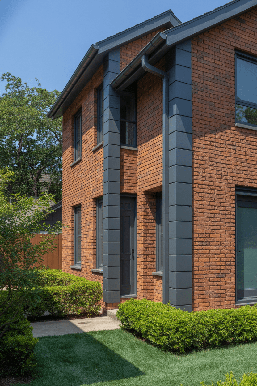 Gray is such a natural partner for red brick because it cools down some of that warmth and gives everything a fresh, transitional vibe. Whether you use gray for siding, trim, or even roofing, it’s an easy way to modernize your existing exterior.