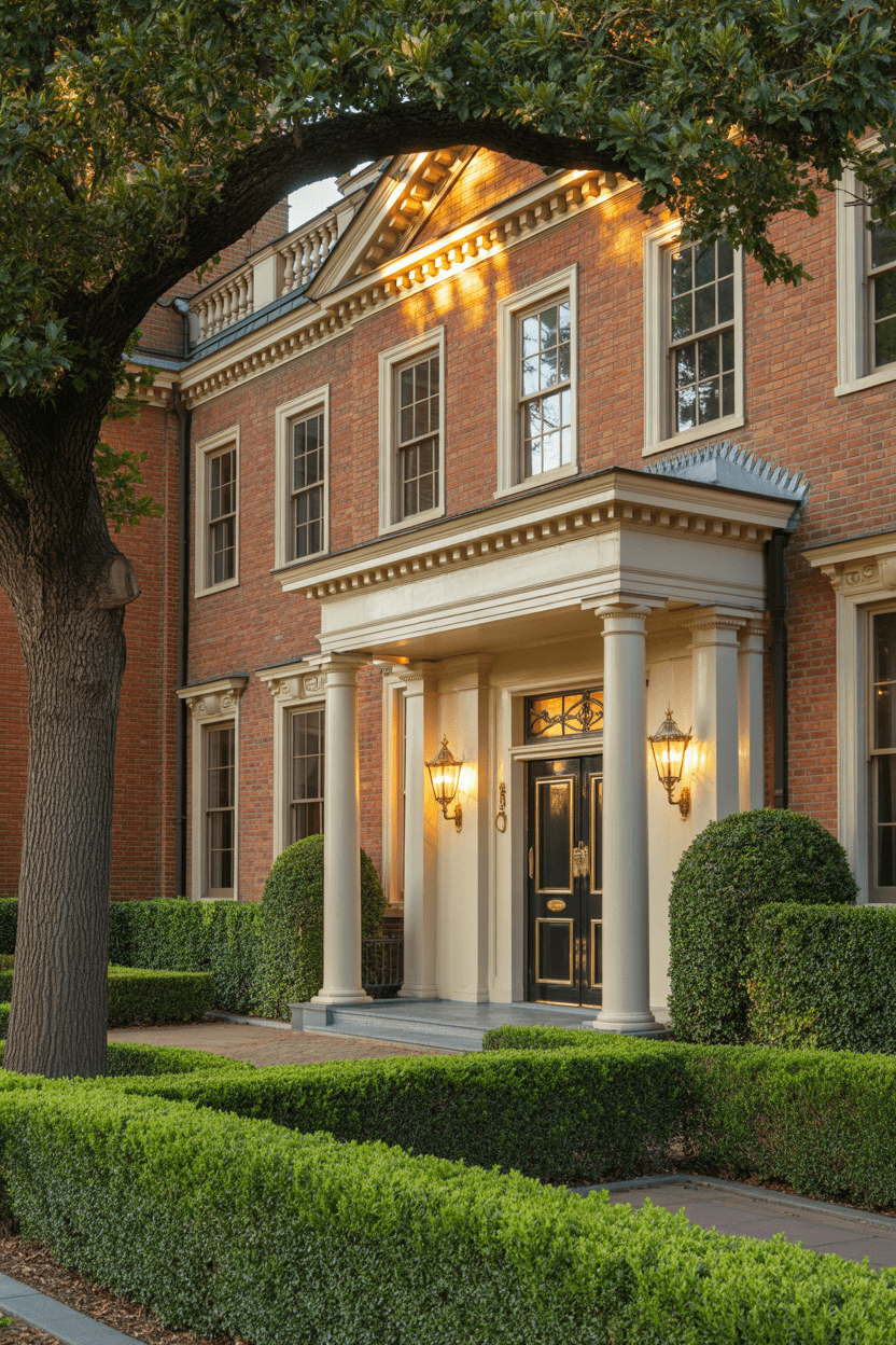 There’s something so polished about a colonial red brick house exterior, but a few thoughtful updates make it even better. Think well-sized shutters, crisp trim, or a freshly painted front door. Keeping the symmetry strong is key for that clean, traditional look.