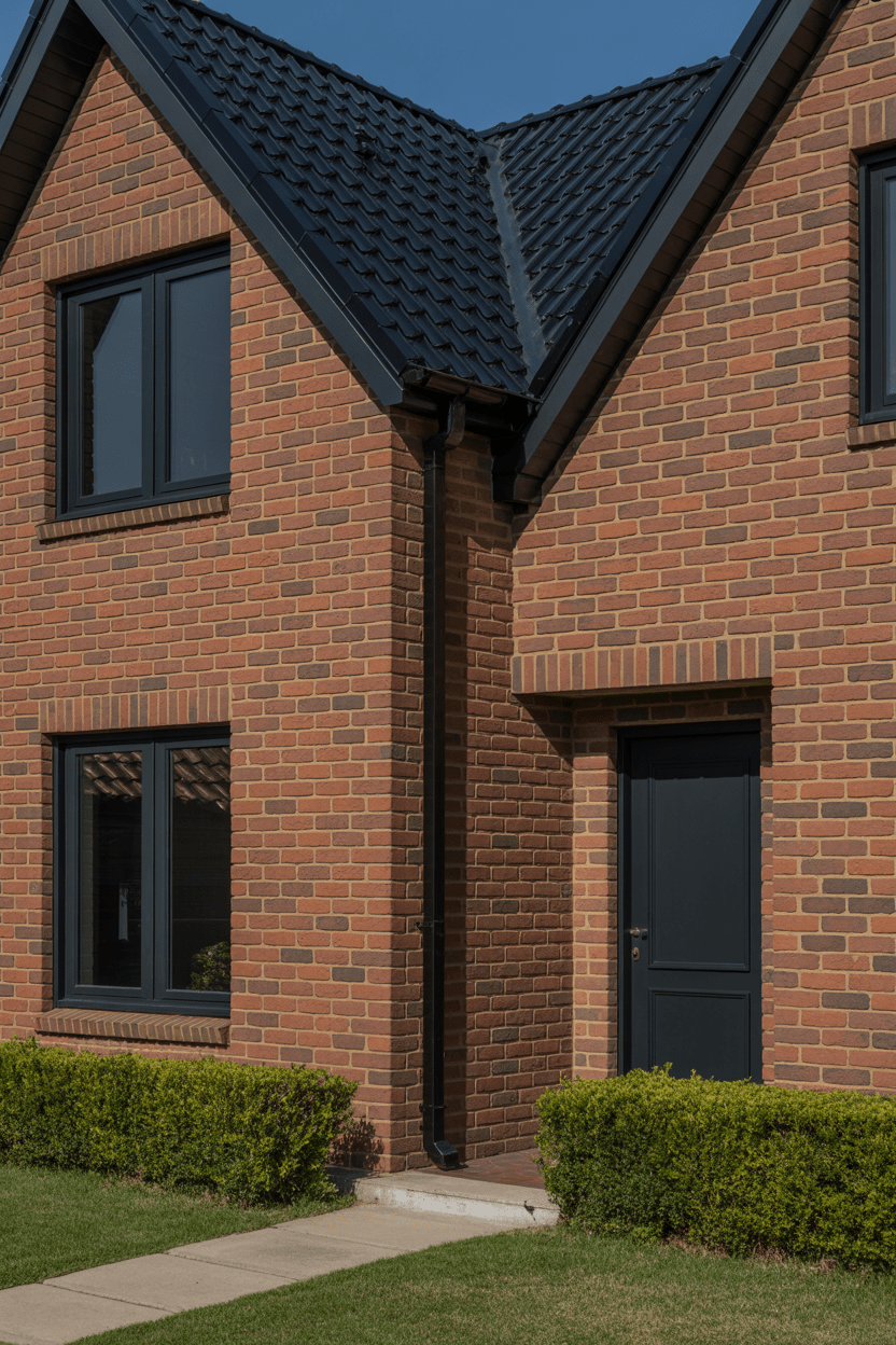 Roof color matters—more than we sometimes realize. Deep charcoal, black, or dark brown shingles help balance out the warmth of red brick while giving your exterior a cohesive, intentional look.