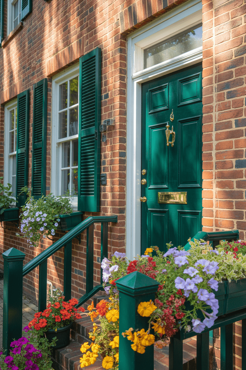 If your brick is naturally deep or dark, lean into it. Charcoal, dark green, and deep gray accents make the brick feel even richer. I love how moody color schemes add sophistication while still keeping everything classic.