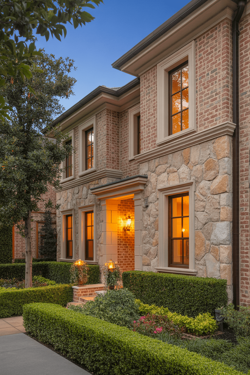 I’ve always loved mixing materials, and stone paired with red brick adds such beautiful richness. Whether you use it around the entryway, on porch bases, or in accent walls, it gives your exterior that upscale, layered look that feels custom and intentional.
