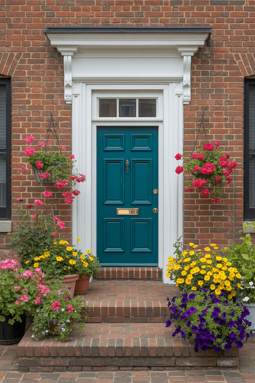 A cool-toned door looks incredible against warm brick. Navy, teal, and slate blue are all gorgeous choices that give your entryway personality while keeping things perfectly classic.