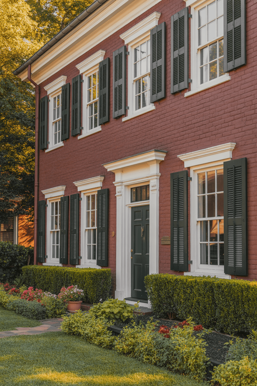 Shutters truly make a difference—they frame the windows, add balance, and give your home that polished, finished look. Black, deep green, charcoal, or navy are all tried-and-true options for red brick.