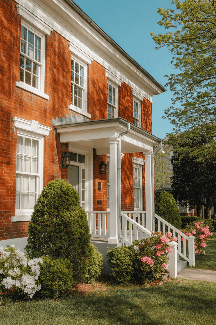 If you want timeless curb appeal, this combo is hard to beat. Crisp white windows and trim brighten the red brick in the prettiest way, making everything feel fresh and classic—almost like a charming historic home that’s been impeccably maintained.