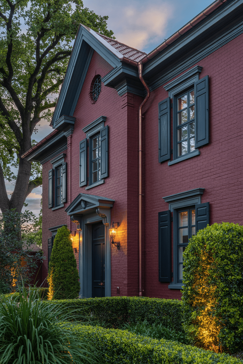 5. Dark red brick exterior with moody accent colors