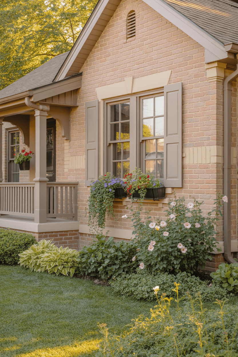 6. Light red brick exterior with soft neutral color schemes
