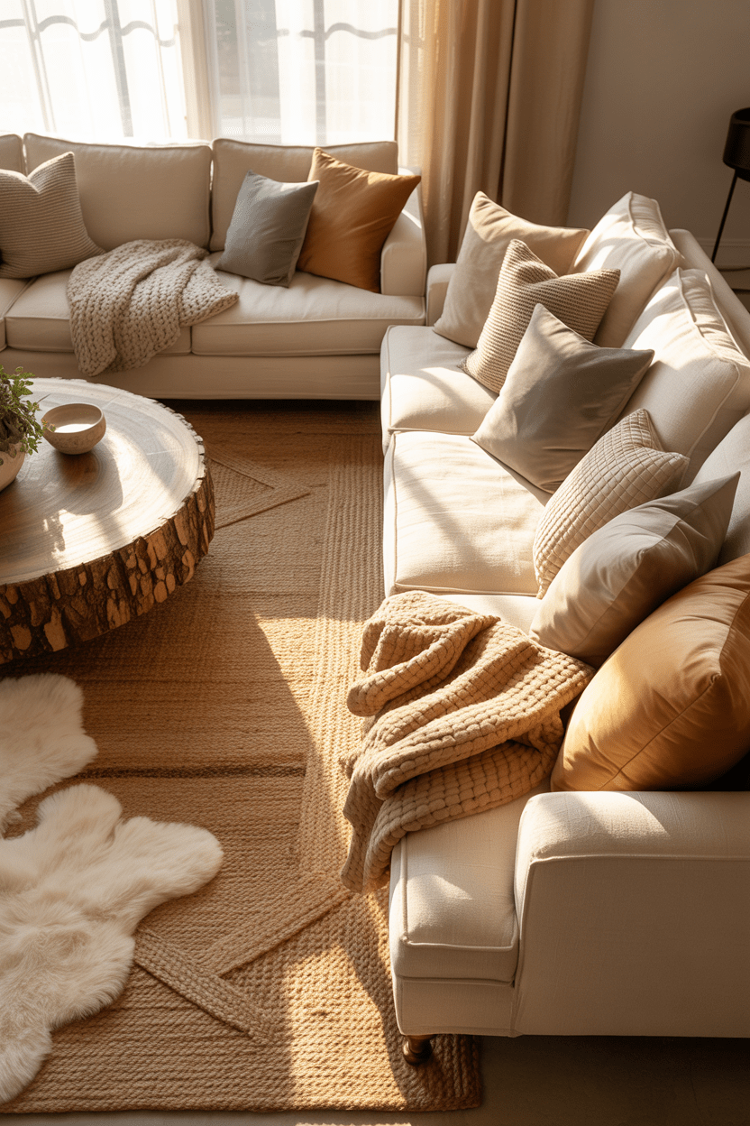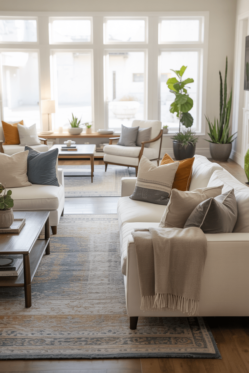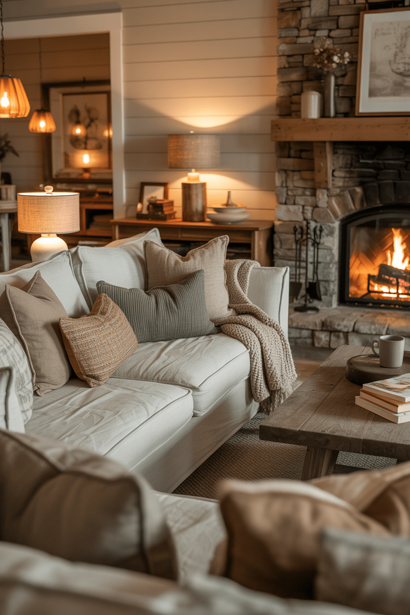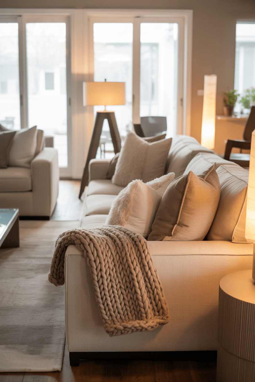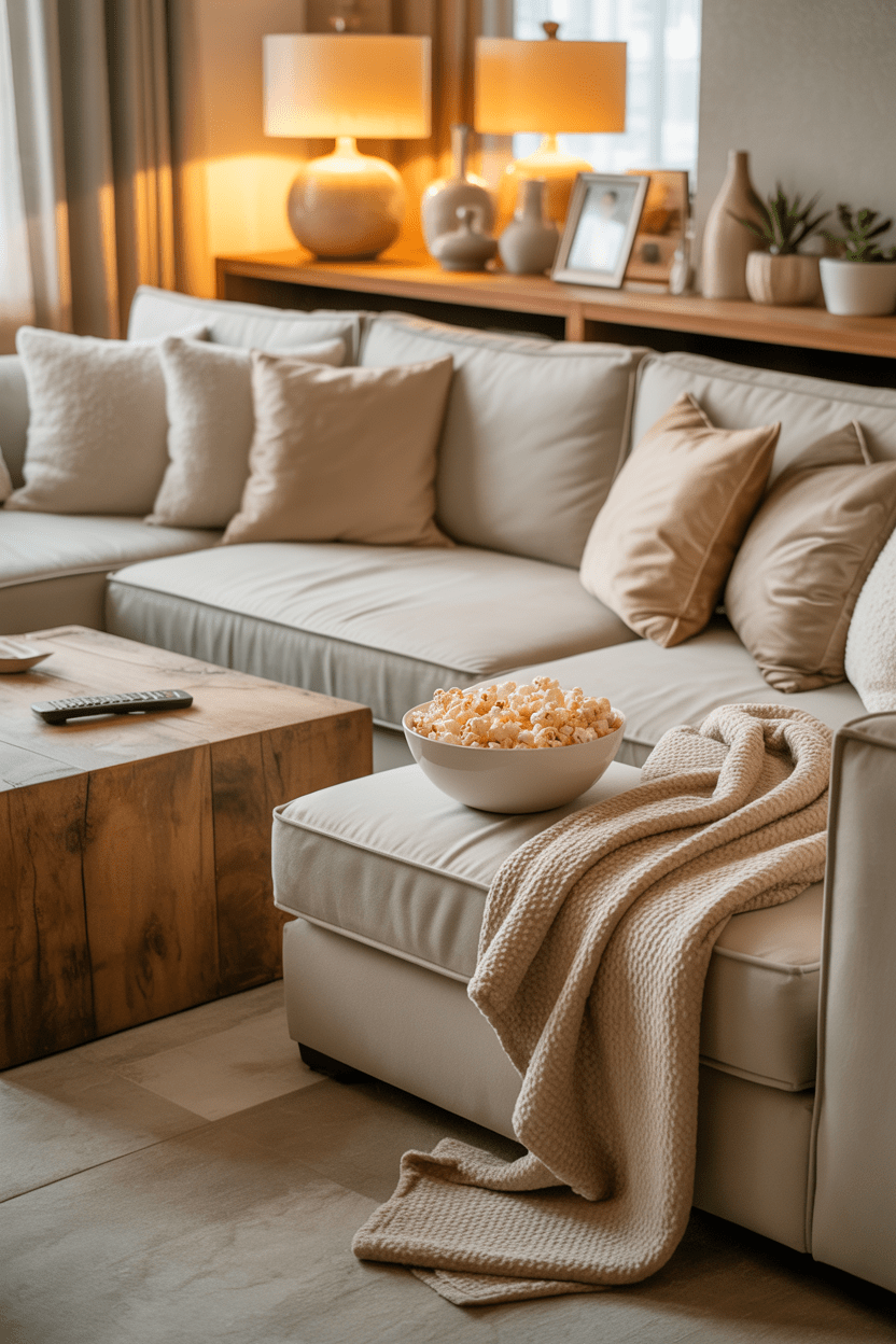 Modern family living room ideas don’t have to feel cold or minimal when comfort is prioritized. Layering soft textures, neutral colors, and comfortable furniture creates a space that feels just as cozy as it is stylish.