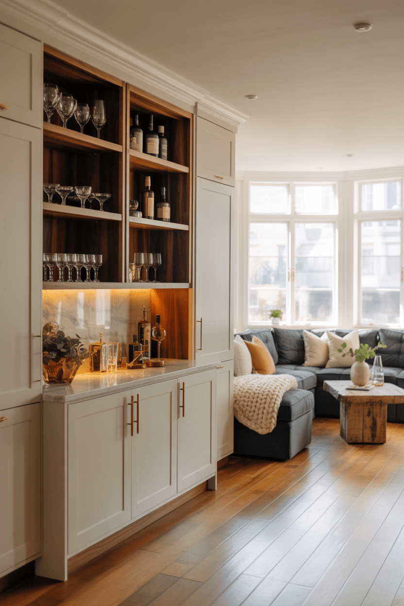 A small bar area can elevate a family room and make entertaining easier. Family room bar ideas work especially well in basements or large family rooms, and built-ins or simple dry bar setups add function without taking over the space.