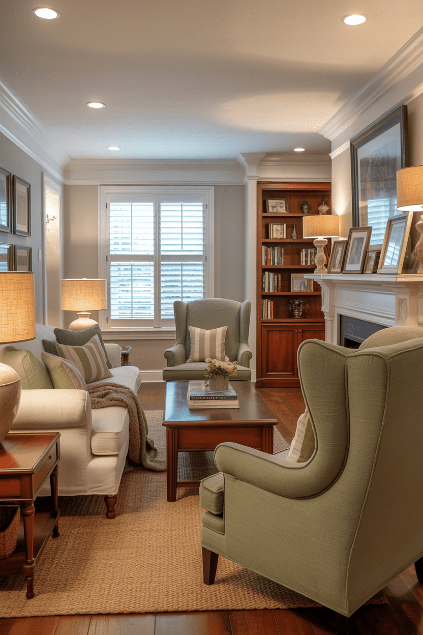 Traditional family room ideas feel fresh and inviting when paired with modern comfort. Classic silhouettes combined with updated fabrics and finishes create a space that feels familiar, cozy, and perfect for everyday living.