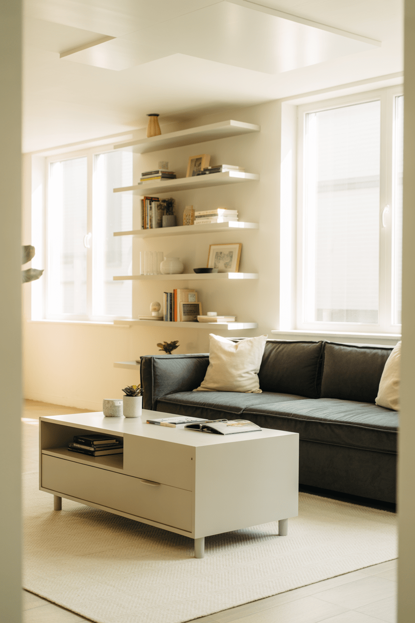 Small family room ideas benefit most from thoughtful furniture choices and a well-planned layout. Choosing a compact sofa or sectional and keeping walkways clear prevents the space from feeling cramped, while wall-mounted shelves and streamlined furniture help maximize every inch.